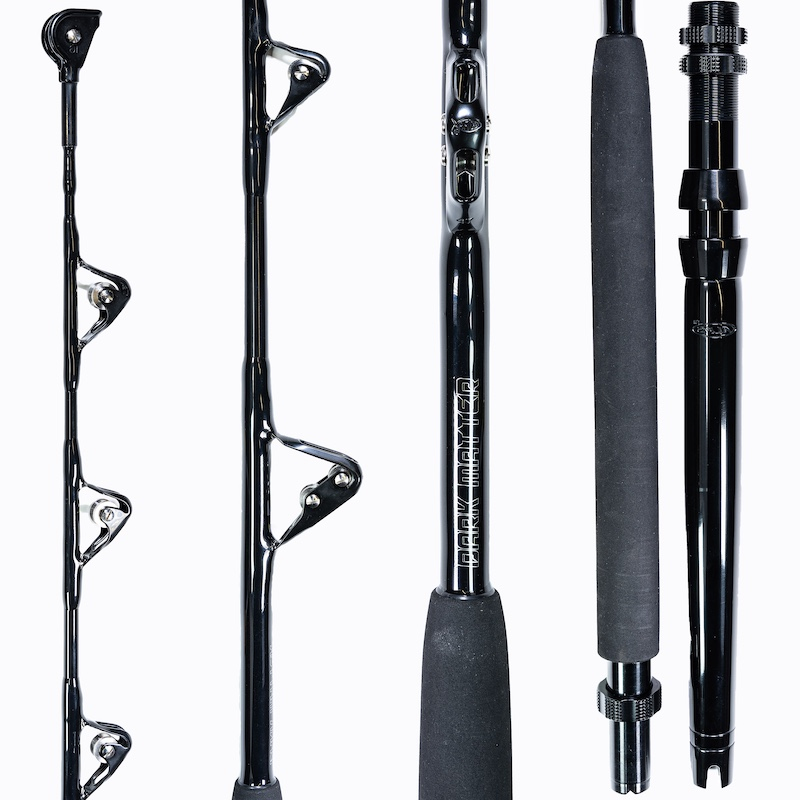 Dark Matter Custom Standup Rods are available in 50-100 lb class in two amazing colors. Choose from Blackout and Blue Fade. These rods can be customized so if you want to upgrade to a Winthrop Terminator Butt, please get in contact with us.Â