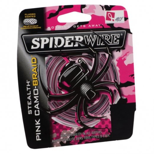 SpiderWire Stealth Pink Camo Braid has a pink/white/black and is available in several sizes.