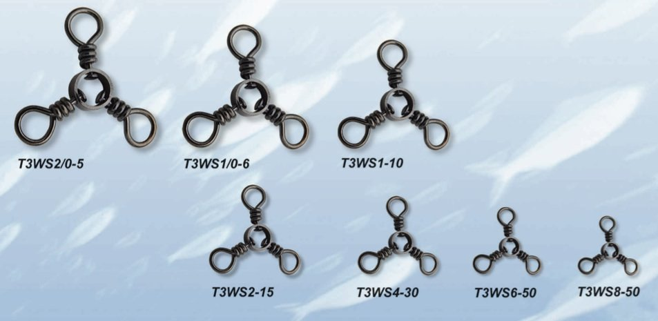 Tsunami Three Way Swivels are made from stainless steel. They are extremely durable and hold up well in saltwater. Tsunami Three Way Swivels act as a splitter for your rigs.